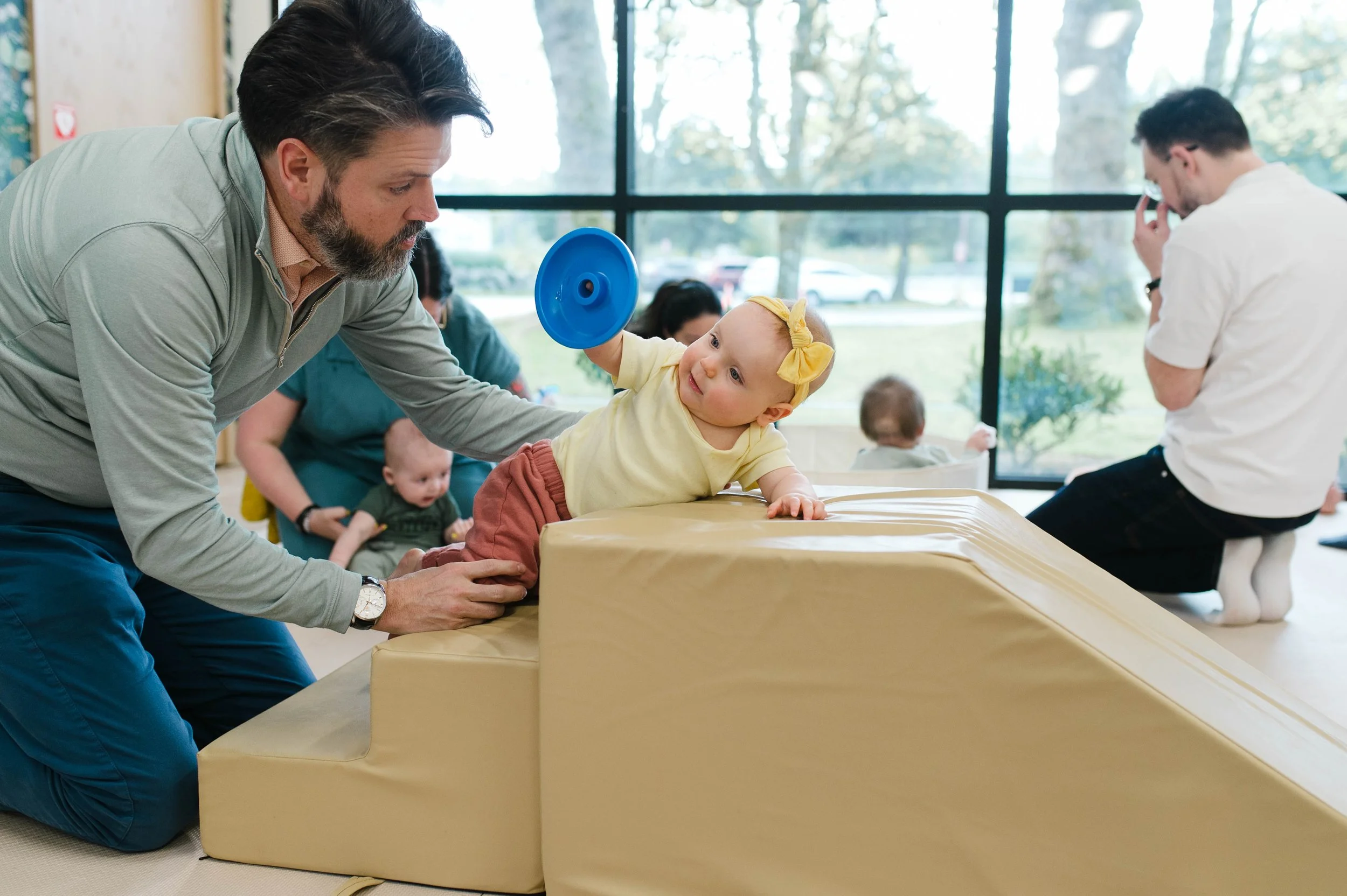 Purposeful Play is a structured weekly class developed by pediatric experts and designed to support your baby’s development through movement, sensory play, and guided activities—during the most important early years
