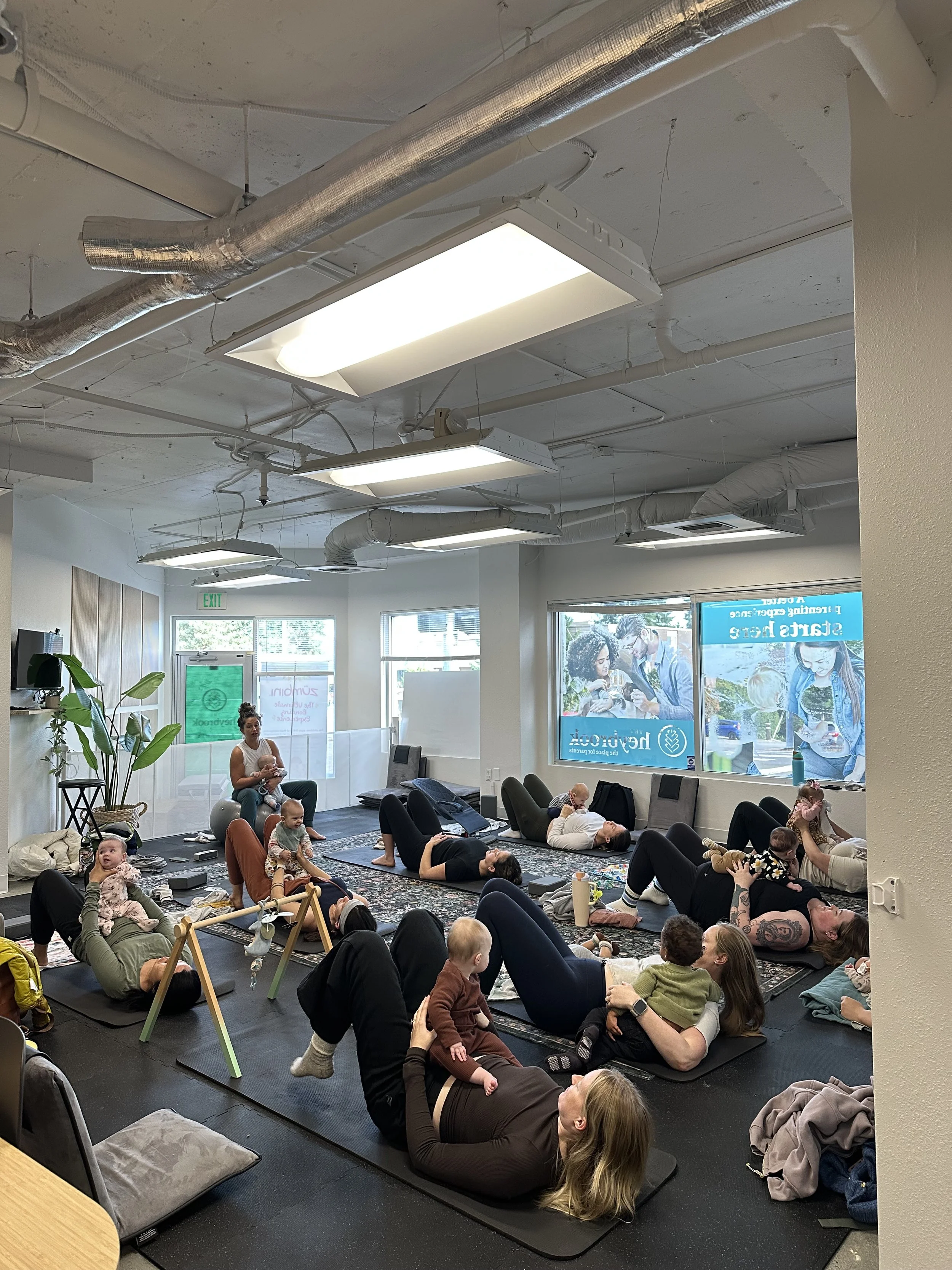 In Baby and Me Yoga, you’ll experience a calming environment where bonding is prioritized. This class offers gentle movements, breathwork, and touch that support postpartum recovery while promoting your baby’s physical development. Our compassionate instructors guide you through each session, ensuring a supportive and inclusive atmosphere for both parents and babies.